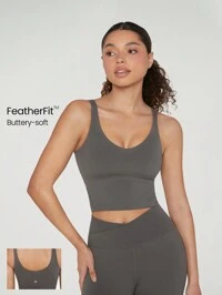 GLOWMODE Sujetador deportivo largo tipo top con espalda en U FeatherFit™, de bajo impacto, para yoga y uso diario