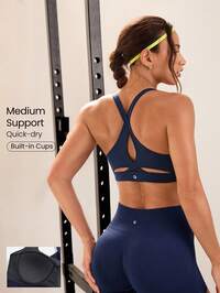 GLOWMODE Sujetador deportivo FeatherFit™-Sculpt de impacto medio, con cierre cruzado en la espalda, recorte y soporte elástico, ideal para entrenamiento, running, gimnasio y uso diario, con copas extraíbles