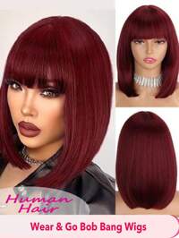MEGALOOK HAIRMEGALOOK Peluca de cabello humano 100% liso y sedoso con flequillo, sin línea de implantación de encaje, sin necesidad de pegamento, tejida a máquina, densidad del 150%, cabello virgen brasileño, con flequillo, adecuada para mujeres, peluca de cabello negro natural liso, peluca bob de 8 pulgadas, peluca larga - aspecto natural, adecuada para uso diario, oficina, Halloween, fiesta, Y2K, vacaciones, juegos de roles al aire libre, escuela, vacaciones, Navidad, fiesta, boda, festival, etc., adecuada para mujeres
