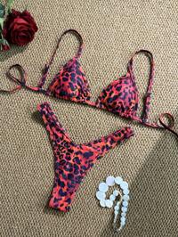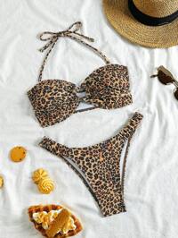 Swim VcaySHEIN VCAY Conjunto de bikini con top bandeau y Bottom con estampado de leopardo para mujer, para verano, vacaciones en la playa, ropa de verano, Día de San Valentín, atuendos de vacaciones para mujer, atuendos de playa para mujer, festival, romántico, bohemio, BOHO, dulce, coqueto, atuendos de festival rave, ropa de mujer para vacaciones tropicales, carnaval, trajes de baño para mujer, trajes de baño para mujer, top tubo