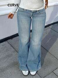 EMERY ROSE CURVEVaqueros acampanados de talla grande, elegantes, chic, formales, para salir, otoño, tallas grandes, tallas grandes, curvas, holgados, cargo, vaquera, Halloween, Año Nuevo, campestre, Navidad.