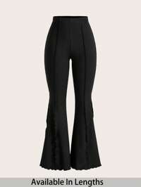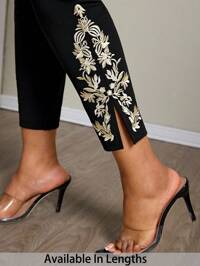 SHEIN PETITE CURVESHEIN PETITE CURVE Pantalones casuales de talle alto con bordado, corte slim, para uso diario, pantalones de primavera de talle alto, para San Valentín, ceremonia de graduación, uso casual, formal, vida diaria, ocio, ir al trabajo, graduación, salir, escuela, pantalones negros de talla grande