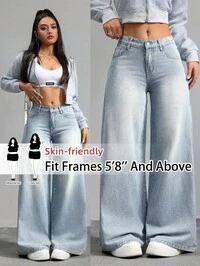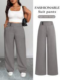 SHEIN PETITE CURVESHEIN PETITE CURVE Pantalones vaqueros anchos de unicolor con botones, versátiles, para mujer, talla grande, otoño, invierno, vuelta al colegio, baile de bienvenida, Halloween, Navidad, ropa casual elegante, estilo campestre, vintage, modesta, negocios casuales, ropa de trabajo para maestras, atuendos para la iglesia