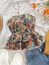 SoleiaSoleia Blusa elegante bohemia y tropical sin tirantes, con hombros abiertos, espalda abierta y bajo con volantes, para mujer, ideal para uso casual, resort, playa, boda, graduación, brunch, Día de San Patricio, vacaciones de primavera, Pascua, festivales de música, otoño/invierno