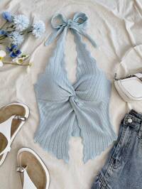 SoleiaSoleia Top sin espalda con volantes, atado a la cintura, informal, para mujer, ideal para verano, playa, vacaciones, citas, fiestas de té, vacaciones, festivales de música, estilo bohemio
