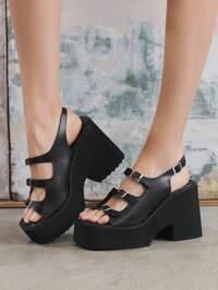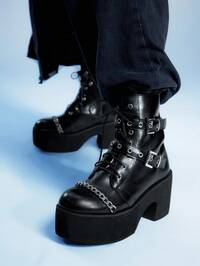 SugerpunkSHEIN X Lucía Bellido Sugerpunk Botines Chelsea de plataforma minimalistas de tacón alto para mujer, de color negro, para vacaciones de verano, rebajas de verano, de vuelta al colegio, para estudiantes universitarias, con estilo Y2K punk, cool, deportivos, para Navidad, otoño y Año Nuevo