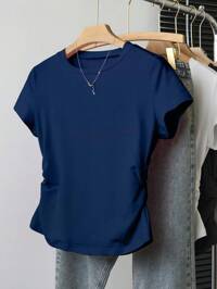 Maija CURVEMaija Blusa de talla grande para primavera/verano 2026 de color marrón, cuello redondo, manga corta, ropa casual de oficina para mujer, suelta y cómoda, de estilo moderno, elegante, urbano, romántico y refinado, adecuada para invitada de boda, cumpleaños, casual de oficina, cita, fiesta, Día de San Valentín, romántica Camiseta de mujer talla grande con estampado de letras y flores de colores en cuello redondo, de moda y versátil. Camiseta estampada en blanco y rosa, adecuada para uso diario, salidas, fiestas, escuela, festivales de música, vacaciones, ir y venir, etc. Puede ser un regalo para la familia, novio, novia, amigos, y una opción de ropa de verano ideal para chicas.