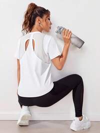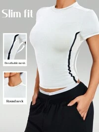 EassivoEassivo Eassivo Camiseta de yoga para mujer, ajustada, para fitness, entrenamiento y ejercicio, con raya lateral. Camiseta sexy, cómoda, para ir al trabajo, al aire libre, para correr, ajustada, de manga corta, para el gimnasio.
