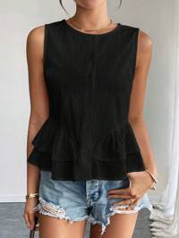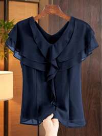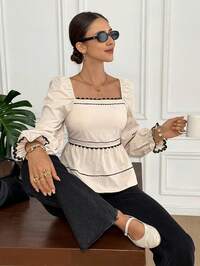 Serisse Blusa de cuello cuadrado con parches y volantes en el bajo, estilo casual francés para mujer. Apta para otoño, invierno y todo el año. Ideal para la oficina, estilo de negocios casuales, elegancia, ir al trabajo, minimalista, oficina, estilo old money, simple. Perfecta para el Día Nacional, Año Nuevo y Acción de Gracias.