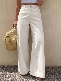 LivessoMYOURSA Pantalones vaqueros de pierna acampanada para mujer, de talle alto, elásticos, de mezclilla, elegantes, casuales, para uso diario, citas, streetwear, escuela y moda, color blanco