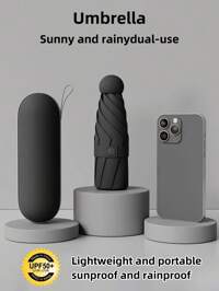 1 pieza Mini paraguas portátil con protección UV y paraguas plegable para lluvia con estuche de transporte para la escuela, oficina, hogar y viajes, útiles escolares